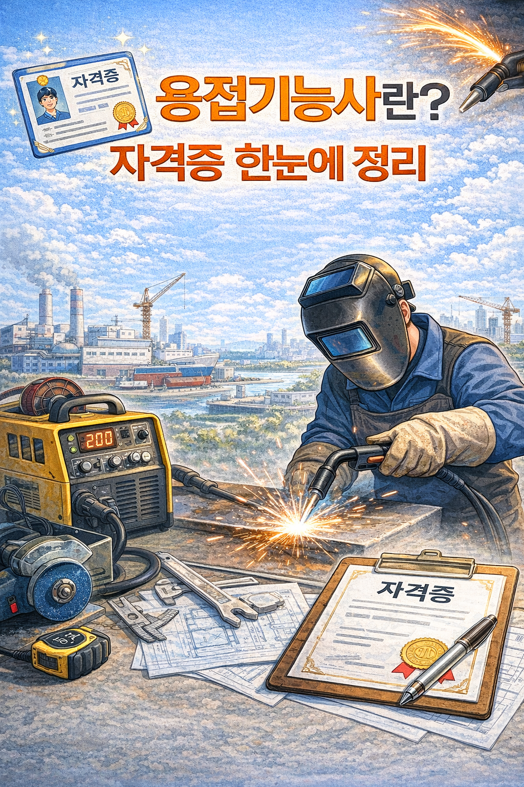 용접은 조선, 건설, 플랜트, 제조업 등 다양한 산업 현장에서 반드시 필요한 기술이 바로 용접입니다. 용접 기술의 기초 역량을 국가가 공식적으로 인정하는 자격증이 바로 용접기능사입니다.