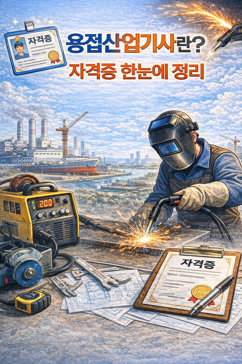 용접 기술은 구조물의 안전과 품질을 좌우하는 핵심 기술로 손꼽힌다. 이처럼 중요한 용접 작업을 단순 작업 수준이 아닌, 이론과 실무를 겸비한 기술 인력으로 수행할 수 있음을 국가가 공식적으로 인정하는 자격증이 바로 용접산업기사입니다.
