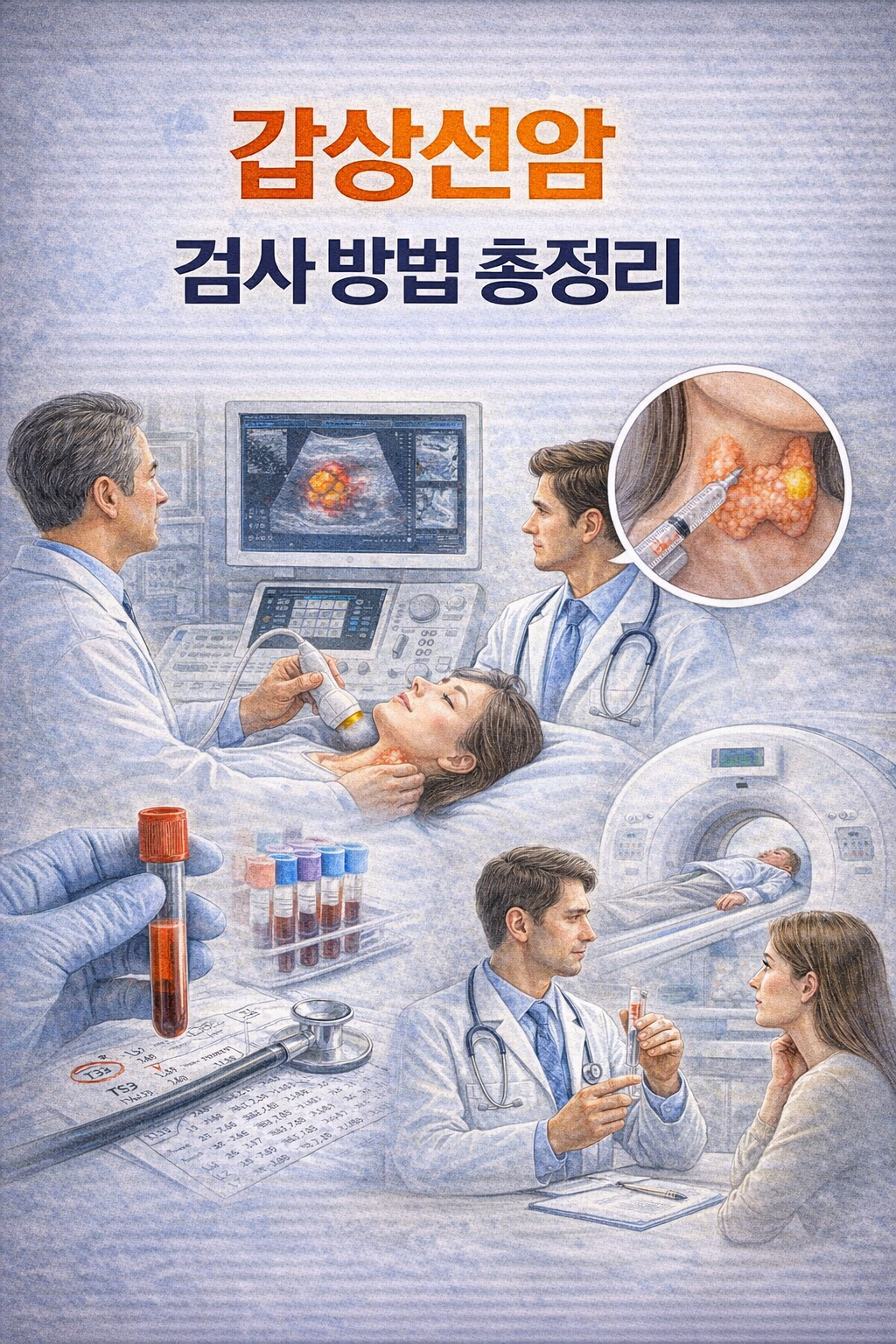 이번 글에서는 갑상선암을 진다하기 위해 시행되는 대표적인 검사 방법을 순서대로 정리해보겠습니다. 그럼 재미있게 읽어주시고 유익한 정보가 되시고 도움이 됬으면 좋겠습니다.