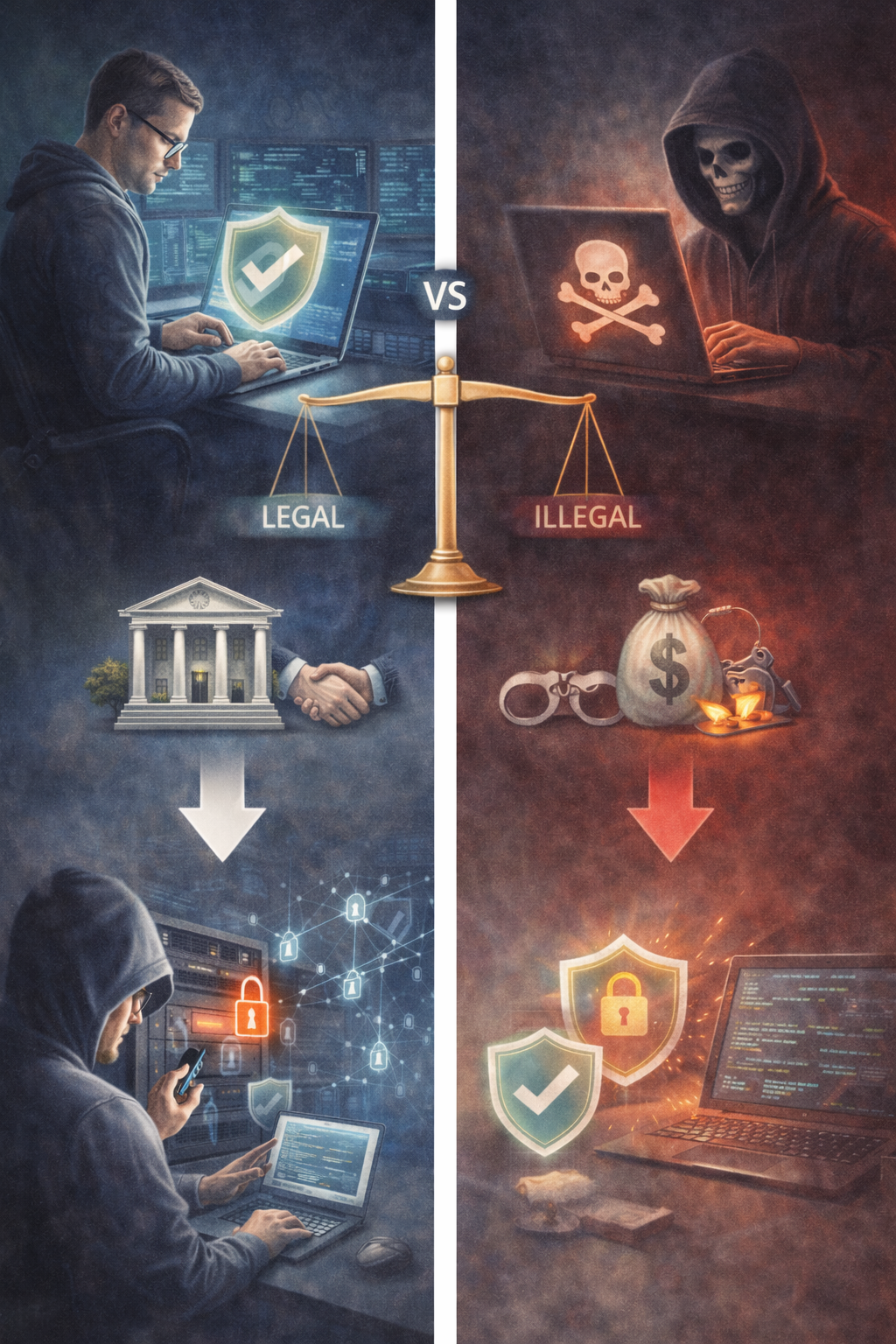 👉 가장 큰 차이는 의도와 합법성입니다.